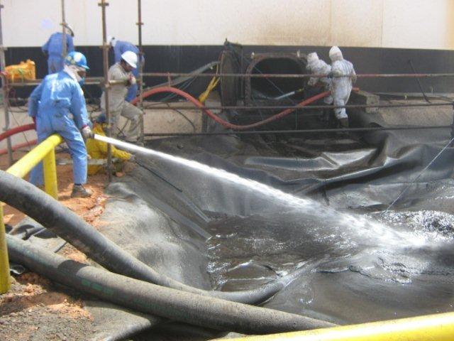 AQUAQUICK 2000 wordt gebruikt om grote olieopslagtanks schoon te maken.