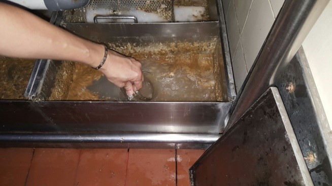 Het afvalolie en vet worden gemengd met AQUAQUICK zodat het de olie en het vet kan afbreken.