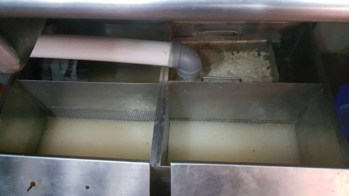 AQUAQUICK 2000 wordt toegepast op de vetafscheider om het verwijderingsproces van vet te starten.