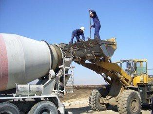 AQUAQUICK 2000 wird auf den Betonmischer aufgetragen, um den Bodenreinigungsprozess zu starten.